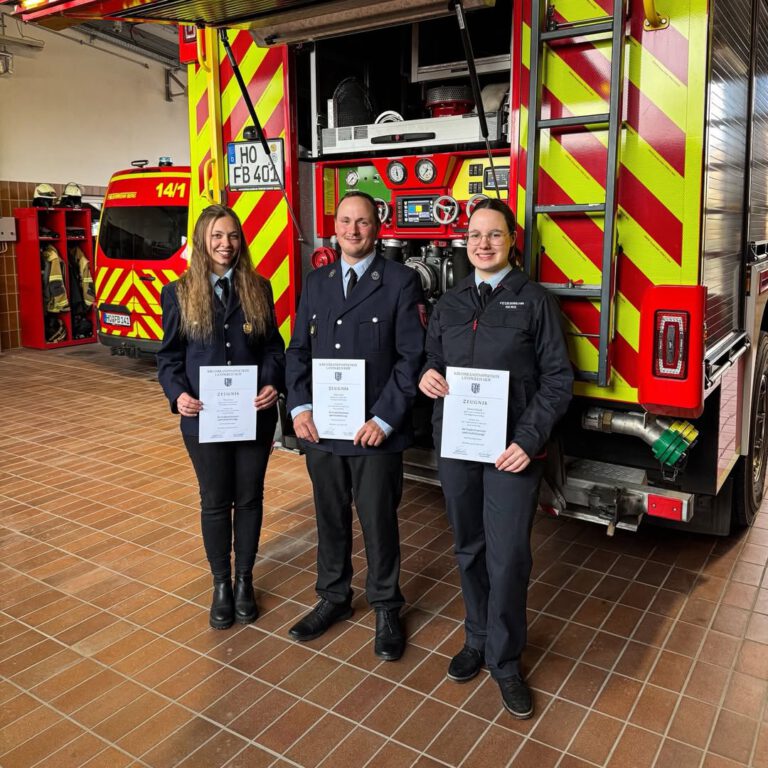 Ein Kamerad und zwei Kameradinnen haben sich in den letzten Wochen dem Maschinistenlehrgang gestellt und diesen mit Erfolg abgeschlossen. Wir danken euch dreien vielmals für euer Engagement und die Bereitschaft eure Freizeit zu opfern, um unsere Einsatzbereitschaft sicherzustellen! Kommt immer unfallfrei von allen Einsätzen zurück!