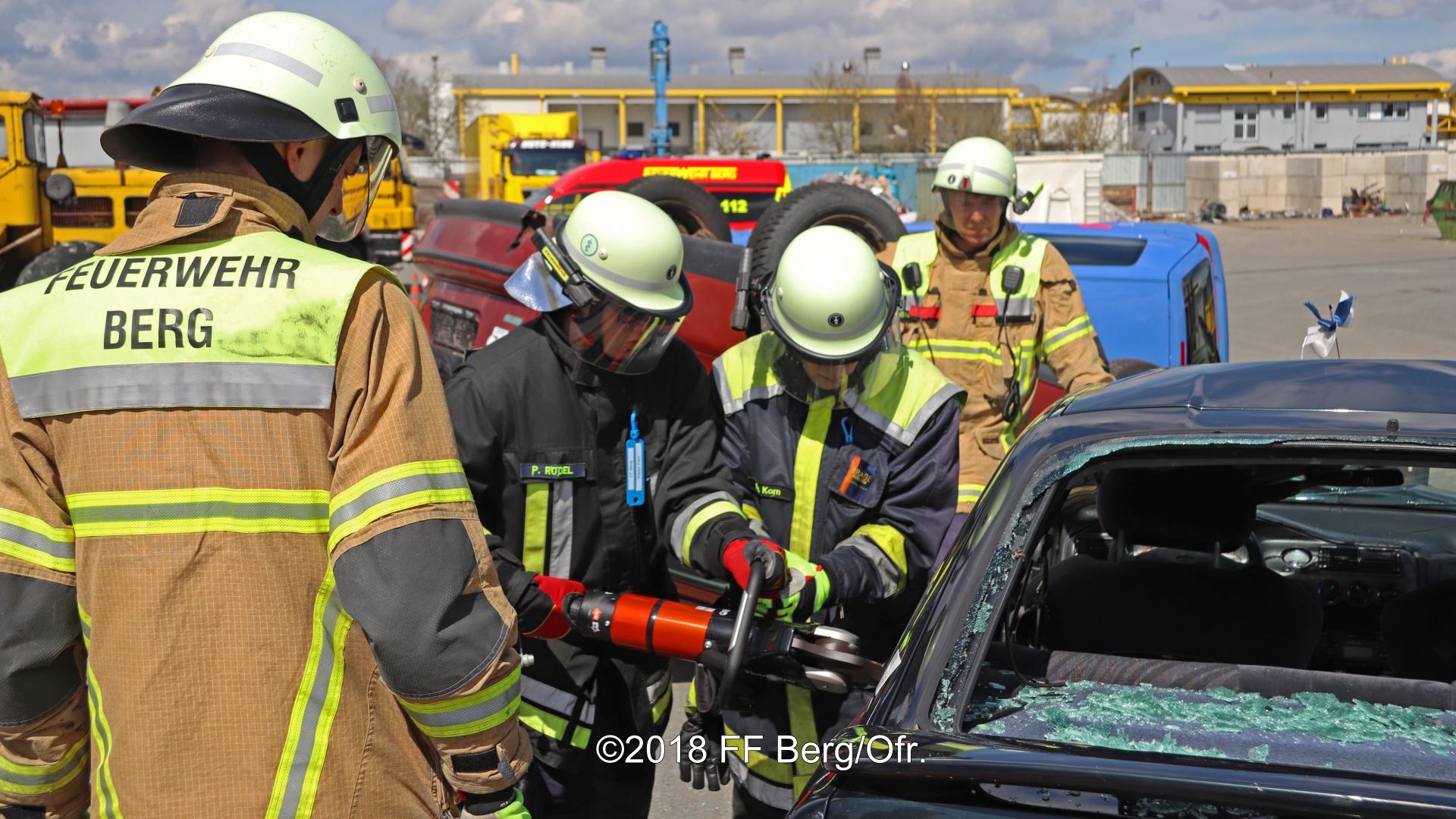 Im Theorieteil wurde den Teilnehmern neben den Neuerungen innerhalb der Fahrzeugtechnologie, die Grundsätze Fahrzeugstabilisierung und die Ordnung des Raumes, sowie Verhaltensgrundsätze beim Arbeiten mit den Rettungsgeräten vermittelt. Am vergangenen Samstag fand der praktische Teil bei der Firma Auto-Klug in Hof statt. An verschiedenen Übungsszenarien wurden verschiedene Möglichkeiten der Fahrzeugstabilisierung und technischen Rettung trainiert. Neben verschiedenen Einsatzmöglichkeiten des Rettungssatzes wurde auch der Einsatz der Säbelsäge geschult sowie die Fahrzeugstabilisierung mit dem neuen Stabilisierungssystem Holmatro V-Strut.