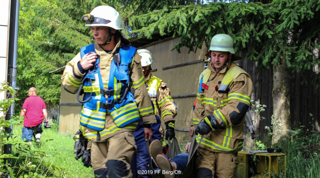 Zwischenzeitlich haben sich PA-Trupps ins Innere des Gebäudes vorgearbeitet, um nach den vermissten Personen zu suchen. Nachdem diese lokalisiert wurden, begannen die Trupps mit der Rettung der Personen. Außerhalb des Gefahrenbereichs wurden die Geretteten zur weiteren ärztlichen Versorgung der BRK Bereitschaft Berg übergeben.